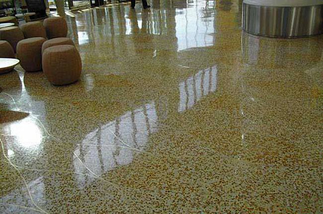 作為現(xiàn)在最熱門的設計和裝飾趨勢之一,水磨石地坪經(jīng)常被用在各種室內(nèi)地面,甚至在家具中都有他的身影,因為他耐用和引人注目。